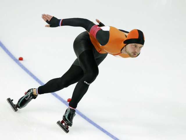 Michel Mulder of the Netherlands skates to a first place finish during the men's 500 meters speed skating race. Phil Noble / Reuters
