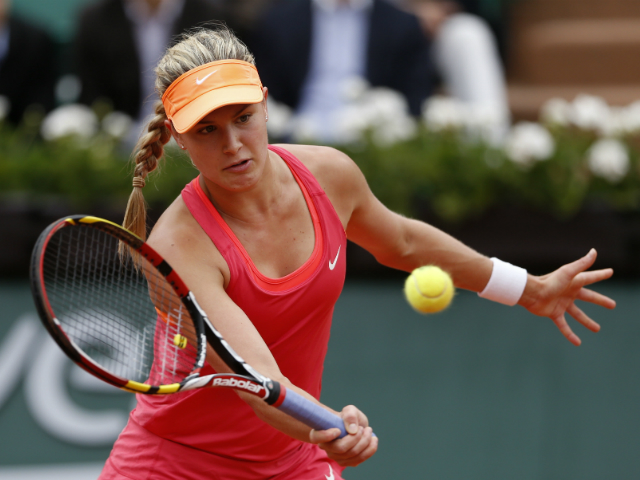 Eugenie Bouchard of Canada returns the ball to Carla Suarez Navarro of Spain. Vincent Kessler / Reuters