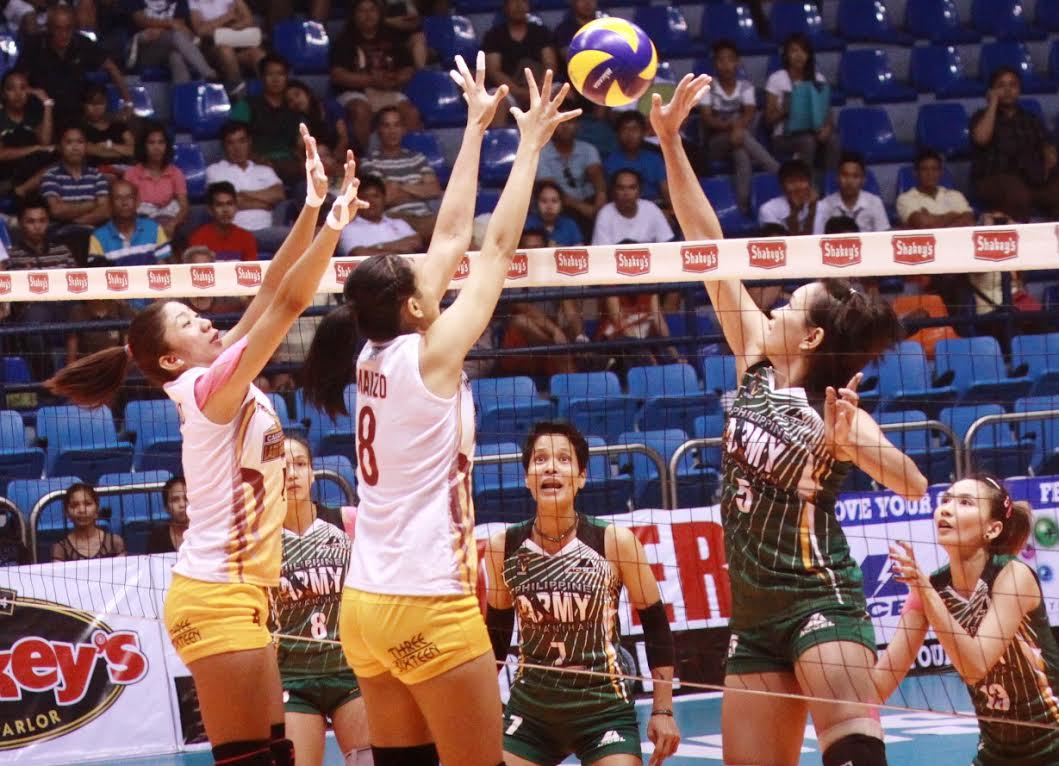 In the first game, Army, doing what it does best, overpowered defending champion Cagayan Valley with its attacking game as it fashioned out a 25-22, 25-15, 22-25, 25-16 victory to seize a share of the lead with idle PLDT Home Telpad.
