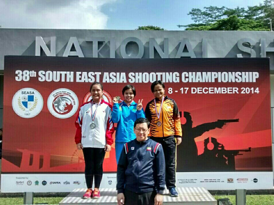 17-year-old Amparo Teresa Acuña (leftmost) bagged silver at the 38th Southeast Asia Shooting Championship, which took place in Singapore. Photo courtesy of Tessa Acuña