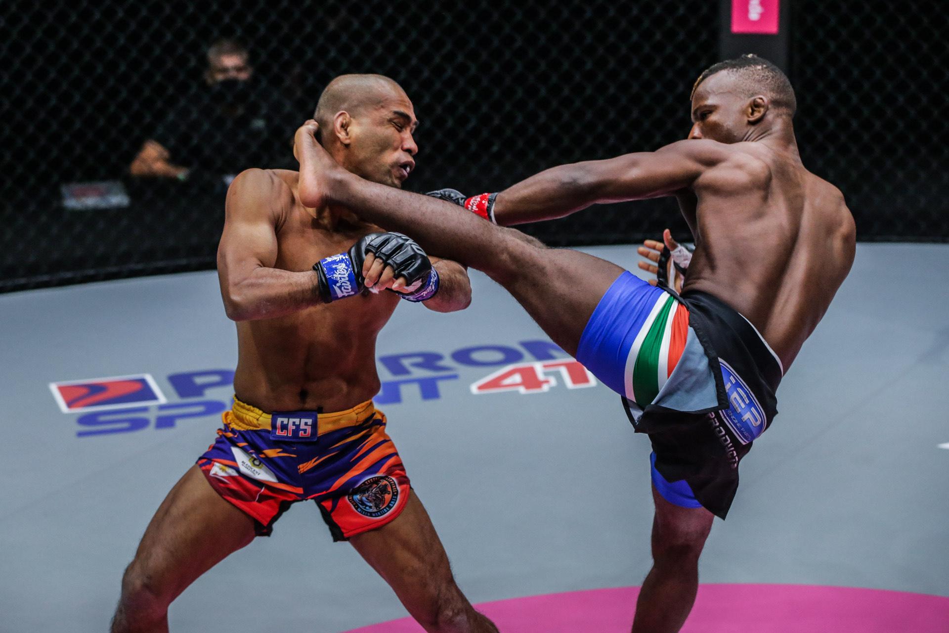 The 41-year-old Asian and Southeast Asian Games wushu gold medalist traded strikes early with his South African foe only to get caught with a head kick that dropped him.