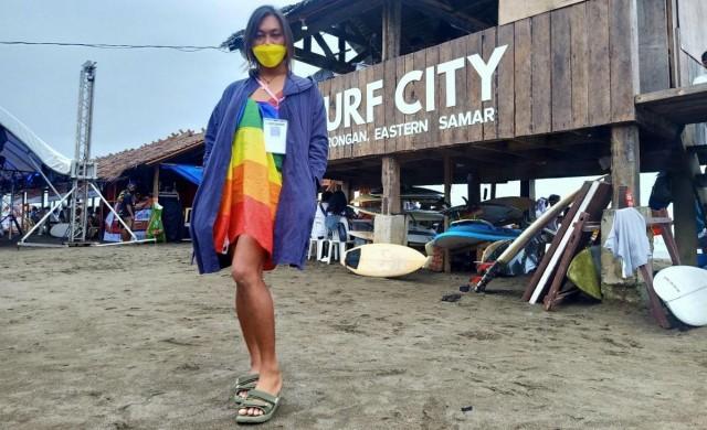 EASTERN SAMAR – While more than 200 athletes from around the country are competing for medals in the 2021 Surf in the City in Borongan, surfer Florentino Gubaton III or "Dods Taylor" has another objective: she wants more members of the LGBTQ+ community to join the sport.