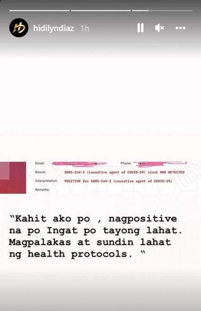 "Kahit ako po, nag-positive na po," Diaz wrote in her story, adding a call to action for everyone to stay safe.