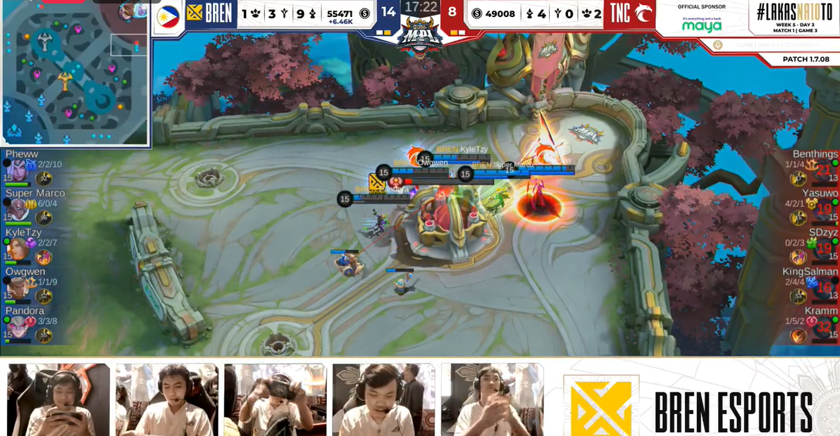 Bren Esports sustained their hot streak to four consecutive wins after taking a 2-1 reverse sweep of TNC Pro Team in Week 5 of the Mobile Legends: Bang Bang Professional League (MPL) Philippines Season 10 on Sunday.