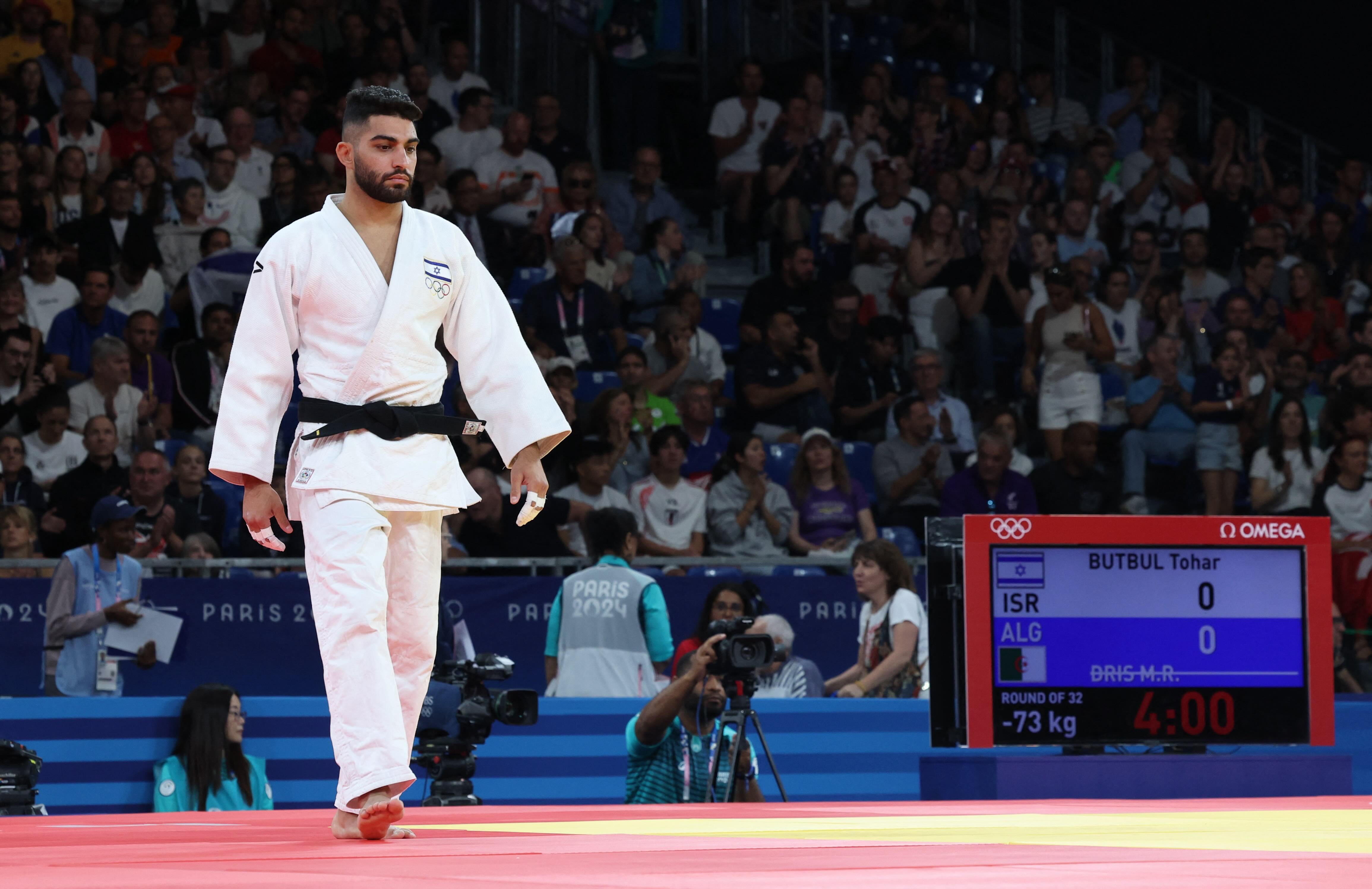 Amid cheers and some boos, Israel's Butbul on Monday came on to the tatami at the Champs de Mars Arena dojo bowing, as is the custom, to where his opponent should have been before leaving to prepare for his second round match later in the morning.