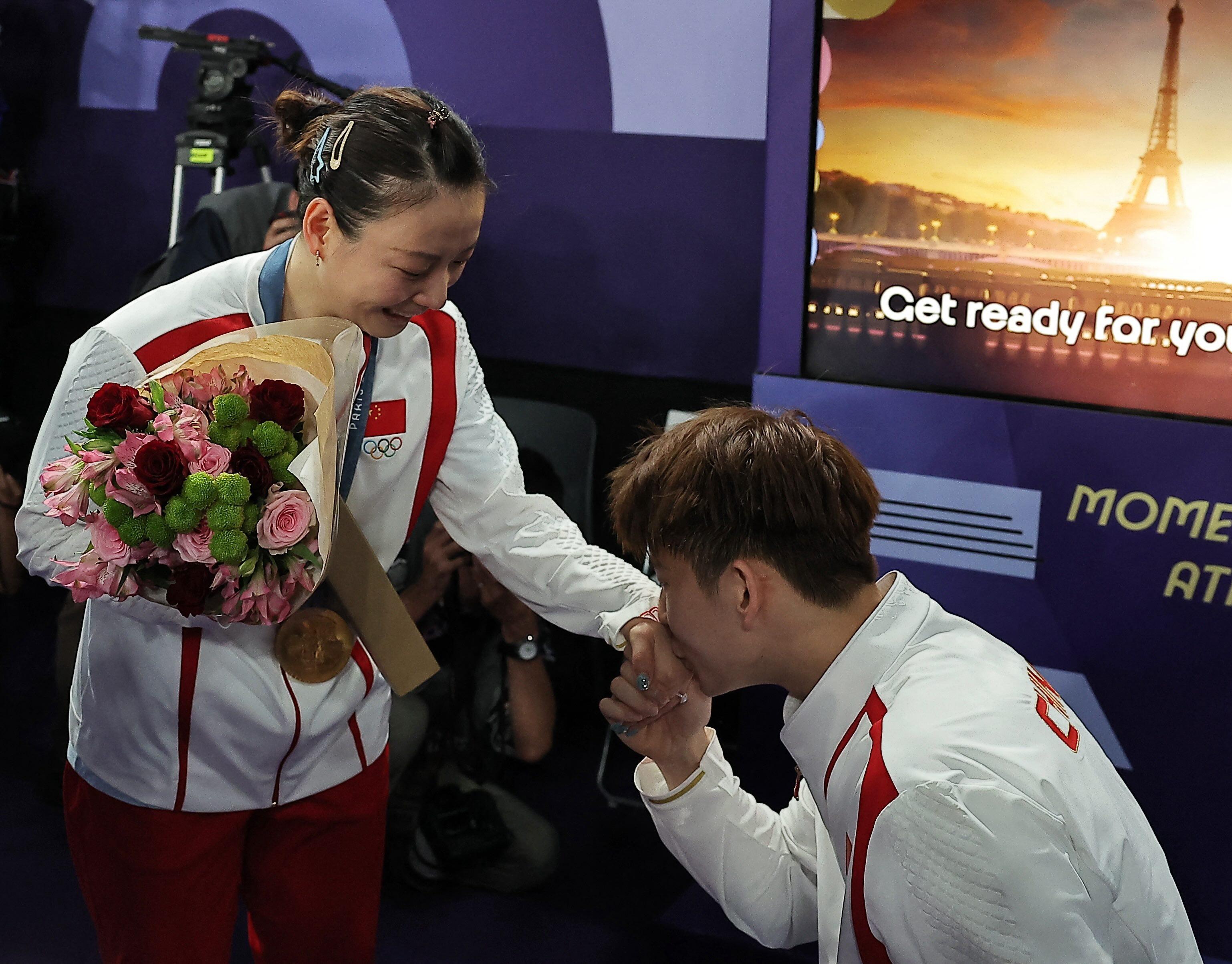 Fans took to social media to gush about the proposal, with one writing on Weibo: "This year's medal count can now include a diamond ring."
