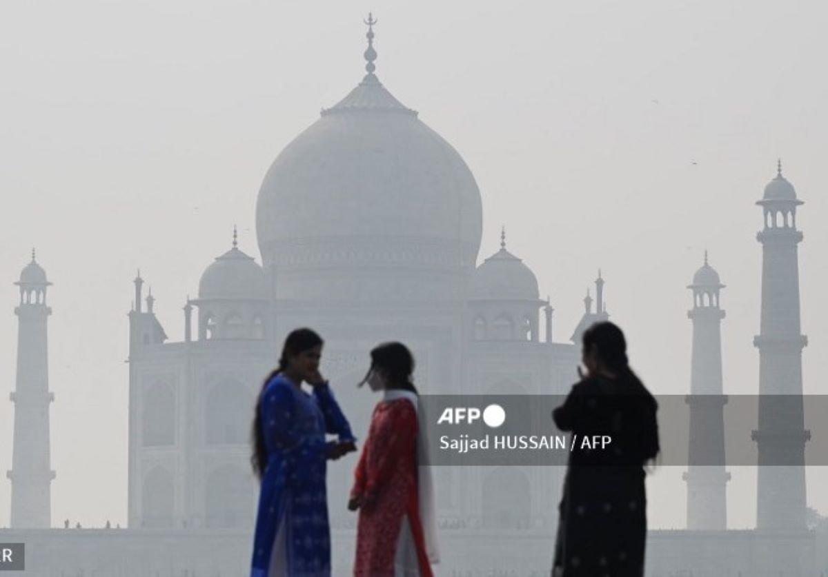 India's famous tourist attraction Taj Mahal in Agra City, located over 200 kilometers from the heavily-polluted air in capital New Delhi, is under a blanket of hazardous haze in this photo tweeted by Agence France-Presse (AFP) on Wednesday, Manila time.