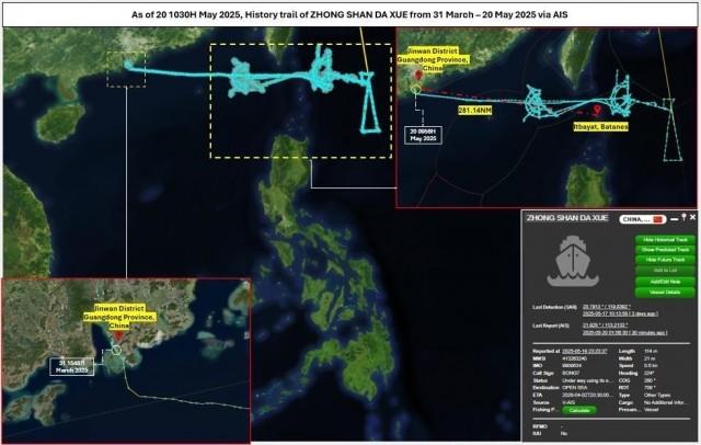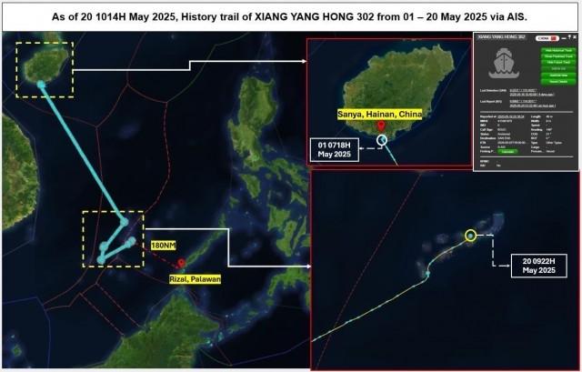 Xiang Yang Hong 302 departed Hainan in China last May 1 and was located 180 nautical miles off the coast of Rizal, Palawan in the Philippines at 8 a.m. on Tuesday, according to Tarriela.