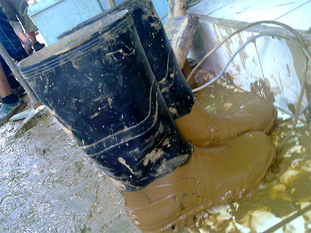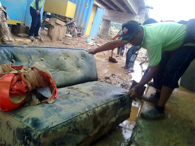 The torrential monsoon rains that soaked Metro Manila and surrounding provinces last week drove almost 50,000 Marikeños out of their homes and into 22 public schools-turned-evacuations centers, as well as gymnasiums, and churches. Day Two of the monsoon rains, last Wednesday, found local rescuers scouring vulnerable communities like the wealthy Provident Village near Marikina's city center for trapped families. During Ondoy's rampage in 2009, the subdivision made headlines when photos of its multiple-story houses almost completely engulfed by the Marikina River and bodies found lying on the muddied streets emerged. Geologists have warned that Provident Village, like many areas in Marikina, sits on a floodplain and is not suitable for human habitation because it serves as a catch basin for heavy rainfall. But residents like Ronald Ramirez, who experienced Ondoy’s nightmare, are bent on staying on despite a repeat of Ondoy’s destructive floods in last week’s monsoon rains. “I love Marikina Provident and I want to go back," Ramirez, a sales agent, told GMA News Online. Instead of moving out, many homeowners and their hired workers simply tidied up the place when the floods subsided. Shovels, mops, water hoses, and rags in hand, they were ready to start all over again. "Oy! Tuluy-tuloy lang! Wala munang chismisan," one homeowner, shirtless and muddied, chuckled as he scooped up thick mud from their front yard using an improvised wooden rake.