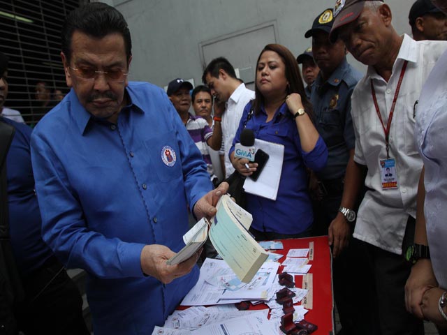 Manila Mayor Joseph Estrada and Vice Mayor Isko Moreno present samples of fake documents seized from a raid on stalls along C.M. Recto in Manila. Danny Pata