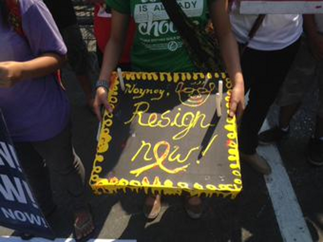 Youth group gives PNoy ‘resign cake’ for his 55th birthday