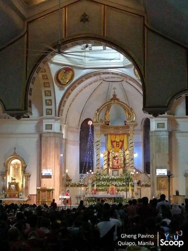 Habang umuusad ng mabagal ang prusisyon, patuloy naman ang misa sa Quiapo Church na dinaluhan ng mga deboto na naghihintay sa pagbalik ng Nazareno. Kuha ni YouScooper Gheng Pavino.