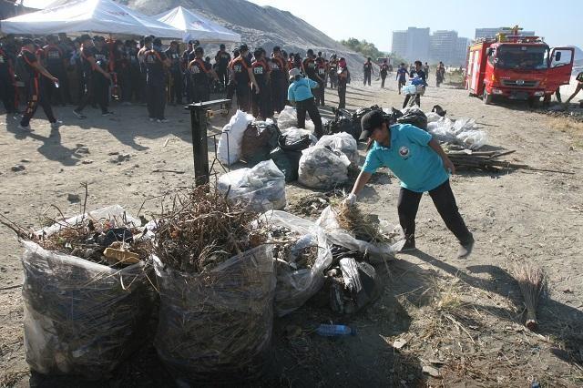 Personnel of the Bureau of Fire Protection (BFP) on Sunday led a cleanup drive in Manila Bay collecting volumes of trash along the shore as part of the rehabilitation of the polluted area in Pasay City.