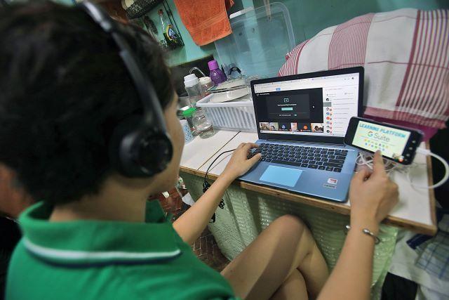 In this photo taken on September 30, 2020, English Teacher Pauline Marasigan-Romero is talking to her pupils from Rafael Palma Elementary School during their online orientation in preparation for their distance learning.
