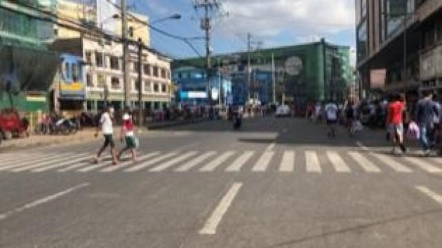 But the Recto Avenue side of Divisoria, traffic was light with a couple of people on the crosswalk on the vehicle-less street on Friday, 25 December 2020.