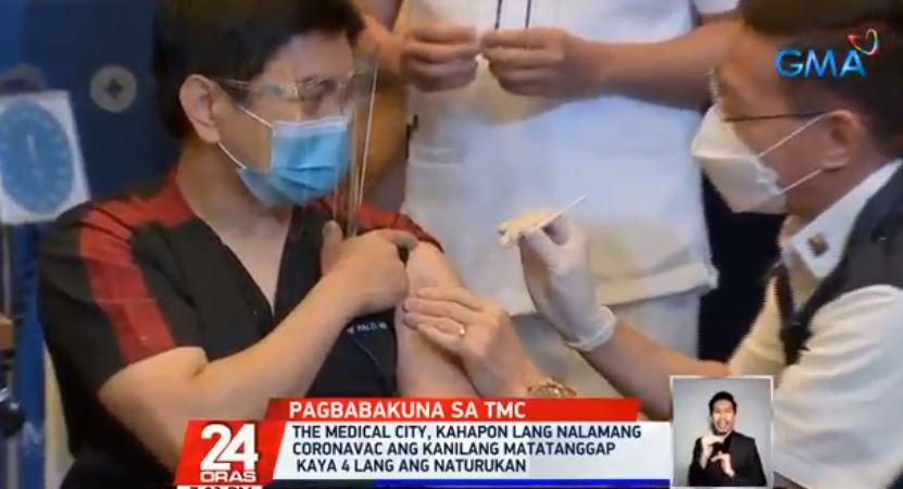 Three doctors and a nurse received the vaccine developed by Chinese firm Sinovac on Wednesday, according to Raffy Tima’s report on "24 Oras."