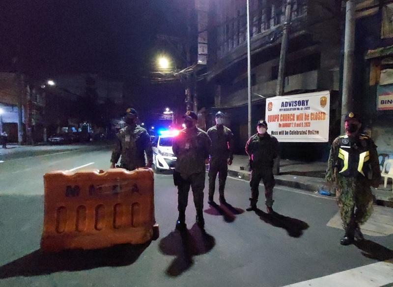 As part of efforts to impose health protocols amid a spike in COVID-19 cases, residents and employees were instructed to present identification cards at a PNP checkpoint at the corner of Carlos Palanca Street and Ayala Boulevard near Quiapo church early Friday morning.