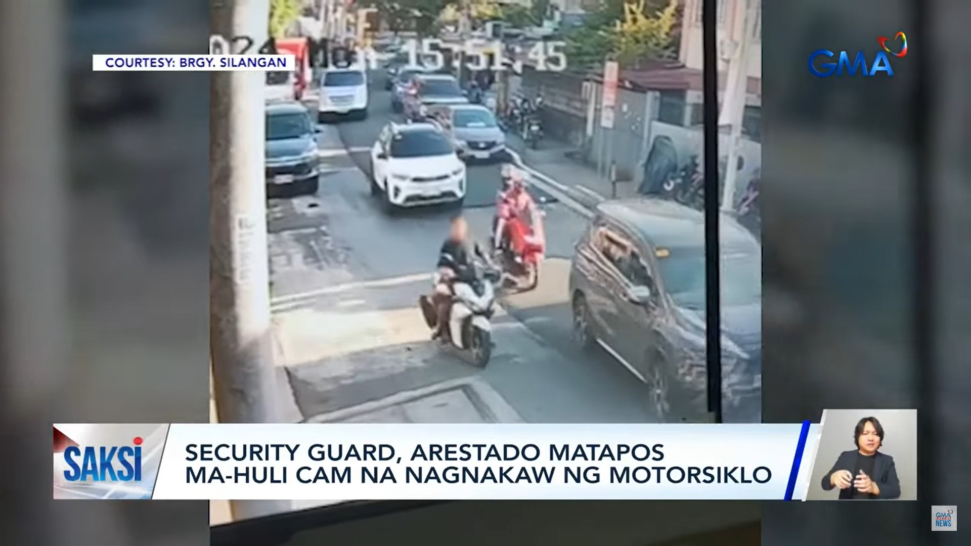 A security guard was arrested after he attempted to steal a motorcycle in Quezon City.