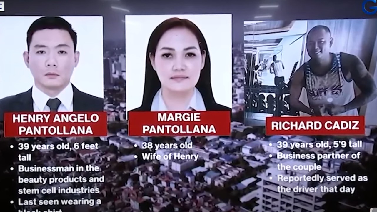 According to Marisol Abdurahman’s Wednesday report on “Saksi,” Henry Angelo Pantollana, his wife, Margie Pantollana, were seen leaving their condominium in Taguig City along with their business partner, Richard Cadiz.