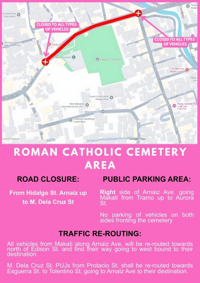 The public parking area will be on the right side of Arnaiz Avenue going Makati from Tramo up to Aurora Street. No vehicles will be allowed to park on both sides of the street in front of the cemetery.