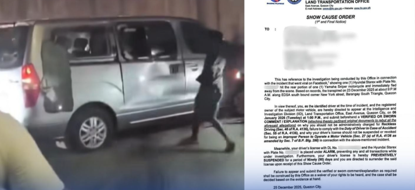LTO Chief and Assistant Secretary Markus Lacanilao ordered the driver, as well as the registered owner of the van, to personally appear before the LTO Intelligence and Investigation Division (LTO-IID) office in a scheduled hearing on Jan. 6, 2026.