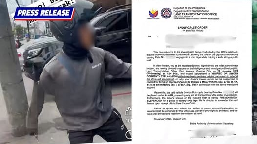 Apart from the rider, the show-cause order also covers the owner of the motorcycle. Both are summoned to face LTO’s Intelligence and Investigation Division in Quezon City on January 21 and submit their verified or sworn comment/explanation.