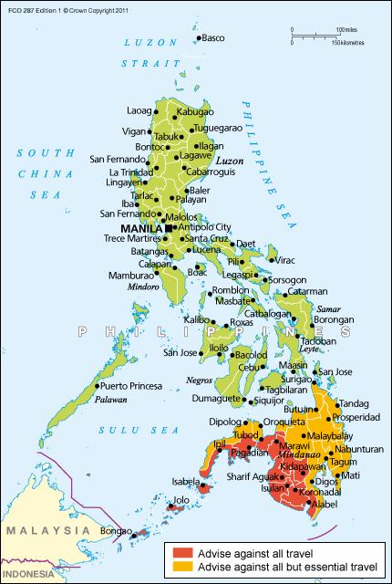UK’s travel warning details parts of Mindanao where travel is discouraged. Photo from FCO.gov.uk