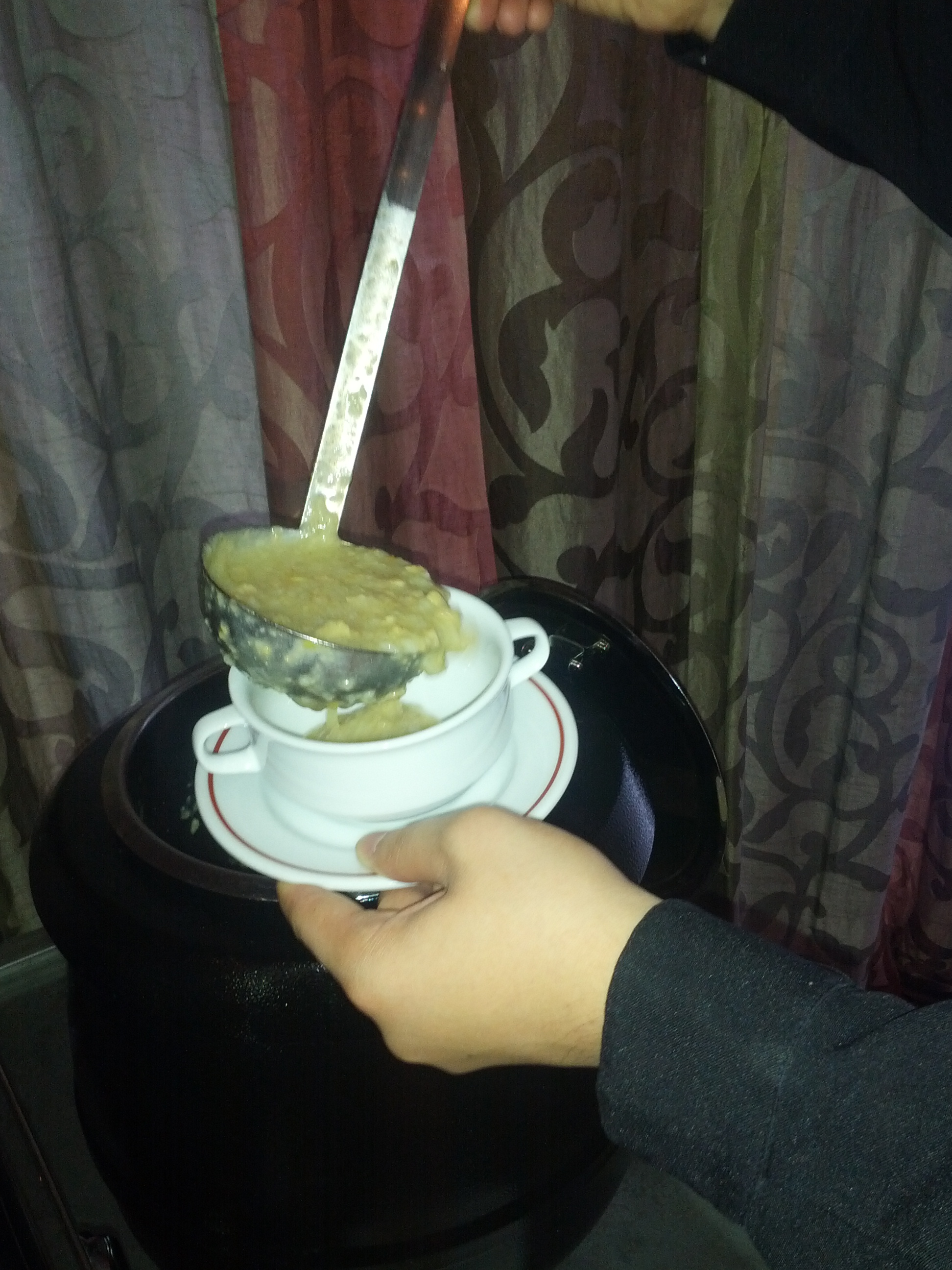 Those who attended the Global Village Champions Foundation’s press conference were fed the same hot meal that will be served in the feeding programs. The porridge is made from organic soya beans. Photo by Rouchelle R. Dinglasan