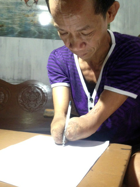 He has learned to write with what was left of his upper arms, and that's how he filled out his ballot.
