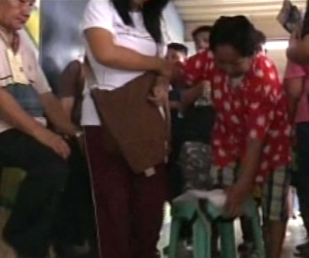 In Quezon City, Magdalena Datono cast her vote, despite only having one leg. The 70-year-old fell in line using a plastic stool to help her walk, GMA News' Joseph Morong reported on Monday afternoon.