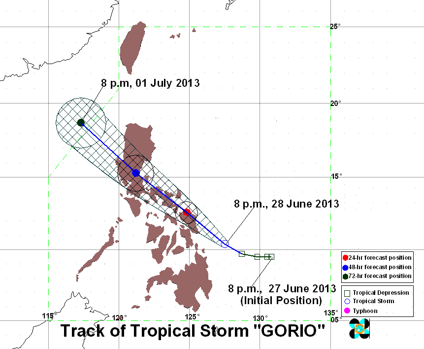 Tropical Storm Gorio is expected to be in the vicinity of Catarman, Northern Samar by tomorrow evening.