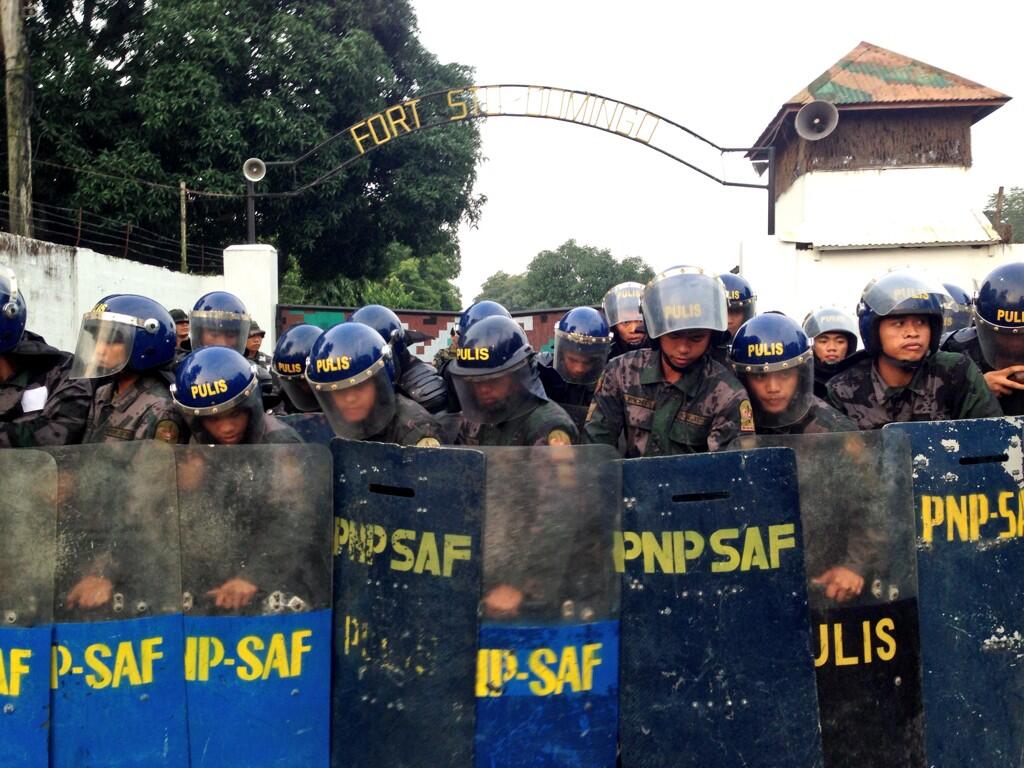 Several SAF personnel took up positions at Fort Sto. Domingo in full battle gear following the arrival of the vehicles.