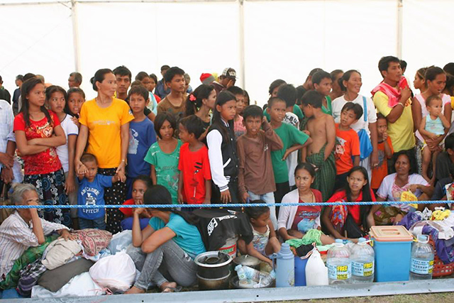 Evacuees at the Joaquin Enriquez Memorial Grandstand in Zamboanga City listen as President Benigno Aquino III speaks to them on Saturday, September 14. The evacuees are hoping the crisis would end soon so they could return to their homes. Philippine Information Agency Region IX
