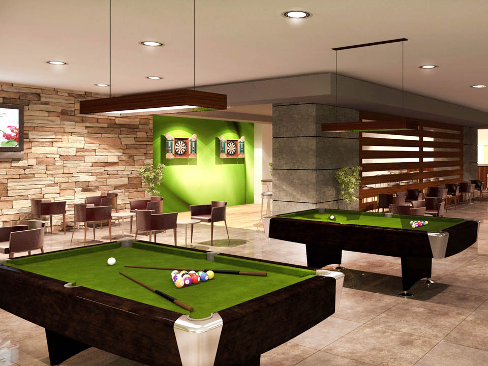There are also two indoor tennis courts, three indoor badminton courts, and a squash court; rock-climbing and rappelling facilities are also available for the adventurous mountaineering enthusiasts. There is also a billiards and darts hall, a bowling alley, a shooting range, and a jogging trail. There is an in-house spa, and a 50-meter lap pool is also available for swimmers, with a kiddie pool for the kids.