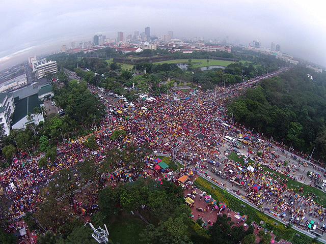 An aerial shot taken by GMA News reporter Raffy Tima gave a bird's eye view of Luneta Park and its sea of Black Nazarene devotees.