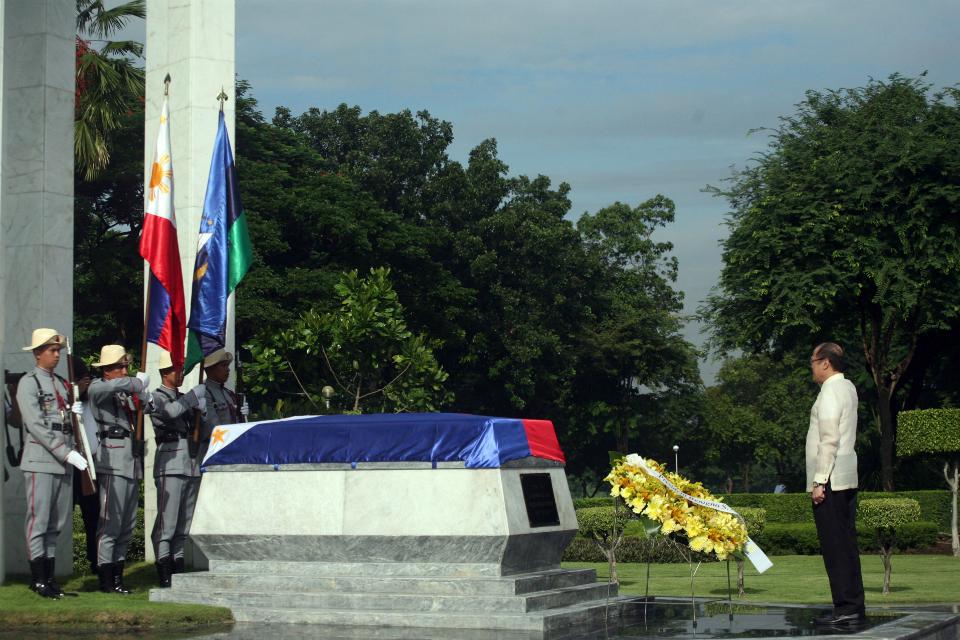 President Benigno Aquino III offers a wreath at the Tomb of the Unknown Soldier, a symbolic shrine commemorating all the country's unsung martyrs, at the Libingan ng mga Bayani on National Heroes Day, Monday, August 31. Danny Pata