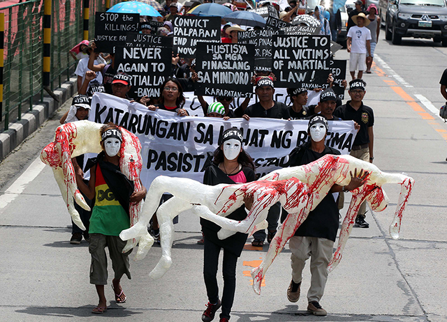 Activists along with relatives of the victims of human rights violations march to EDSA Shrine on Sunday, September 21, to mark the 42nd anniversary of the declaration of martial law. --GMA News