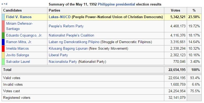 Salonga got 2.3 million votes which was just enough to place him 6th in the 7-way race.
