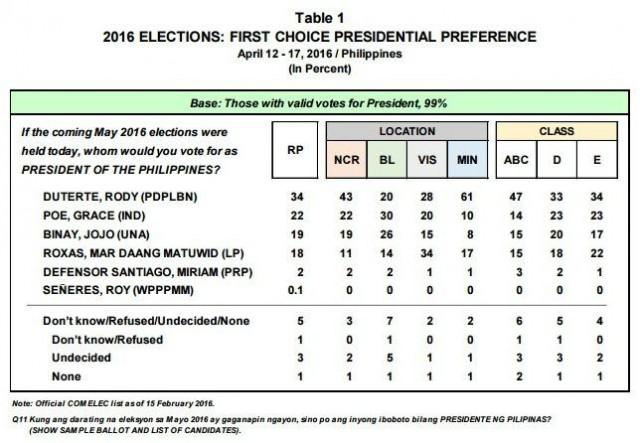 Duterte also led in classes D and E, with 33 percent and 34 percent respectively.