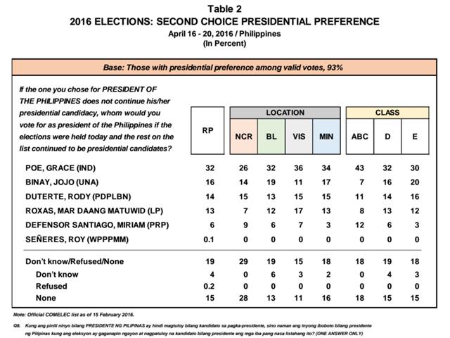 Poe, meanwhile, led as the "second choice" presidential candidate with 32 percent.