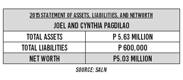 Pagdilao declared a net worth of P5.03 million in his 2015 SALN with assets amounting to P4.1 million and declared liability at P600,000.