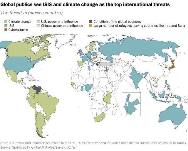 In the Asia Pacific, ISIS is seen as the top regional threat at 62 percent, followed by climate change (61 percent).