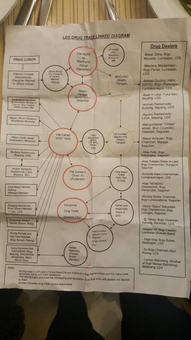 In a separate interview, Dr. Mosib D. Sarip, Secretary of the Sangguniang Bayan of Marantao, said: “Our former mayor [Abinal] was instrumental in the surrender of 334 drug dependents ... I believe that the fabrication of the supposed matrix was politically motivated.”
