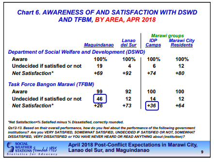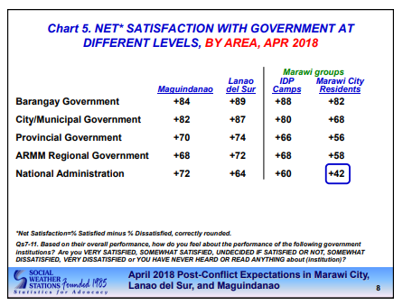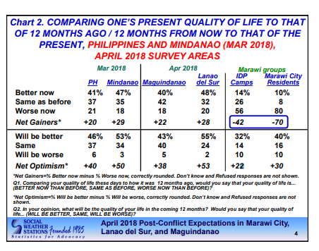 The poll resulted in a -42 score from Marawi folks in IDP camps and a -70 from residents in the city.