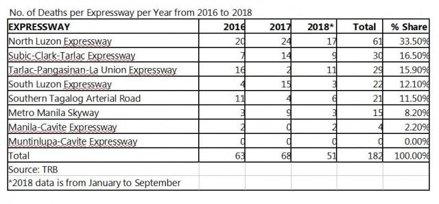September 2018 claimed a total of 51 lives. A third of these fatalities died in NLEx.