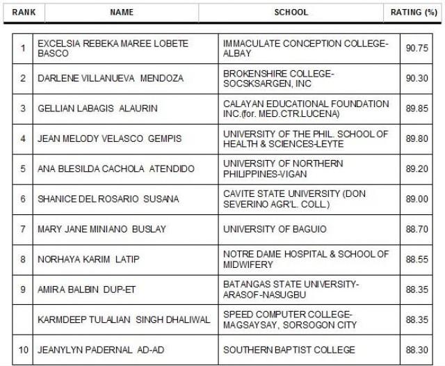 A student from the Immaculate Conception College-Albay topped the Professional Regulation Commission's midwifery licensure examinations.