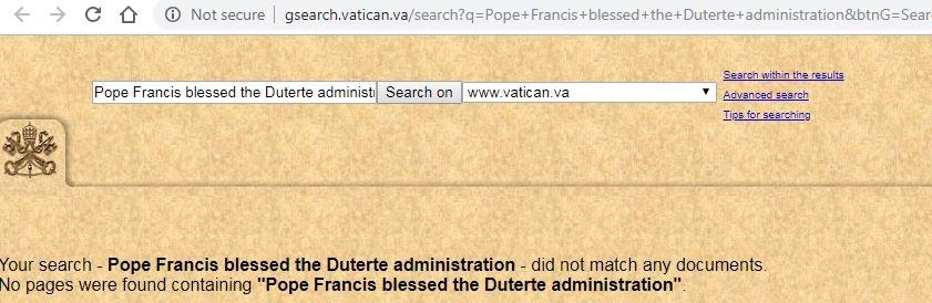 A search of the website of the Holy See also made no mention of the purported blessing given to the Duterte administration.