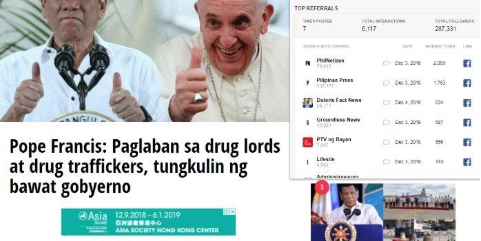 The Philnetizen website said that Pope Francis blessed governments, especially the Duterte administration, so that they could have more strength to fight “traffickers of death”.