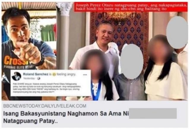The reports, when shared over Facebook and Twitter, have the photo montage below with a headline that, when translated to English, says: “A man who went on a vacation to the Philippines and challenged the father of [the accused bully] to a fight has been found dead”.