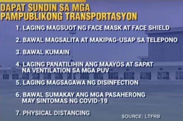 Also, the LTFRB reminded travelers and bus companies to strictly implement health protocols.